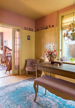 Je woonomgeving, een afspiegeling zoals je werkelijk bent. Dat vraagt afstemming en de kunst van de juiste stoffen, meubels, kleuren te combineren. Een grote liefde voor kleuren, stoffen en oude meubels, het liefst intensief gebruikt, met een verhaal. Wij scheppen opnieuw de wereld er omheen. We werken intuïtief, luisteren tussen de regels door en vinden dan de persoonlijke bron waaruit we jouw huis gaan vormgeven.